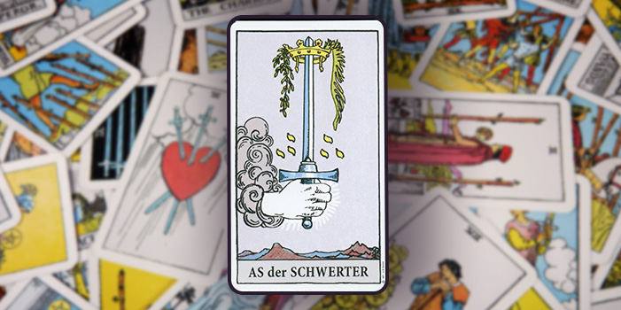 Die Tarotkarten Bedeutung zeigt das As der Schwerter im Tarot als Regent der Vernunft und Originalität. Schlagartige Klarheit und mentale Kraft bringen uns Erkenntnisse, die uns entschlossen und mutig handeln lassen.